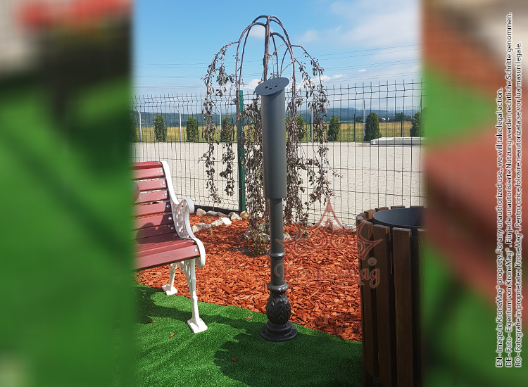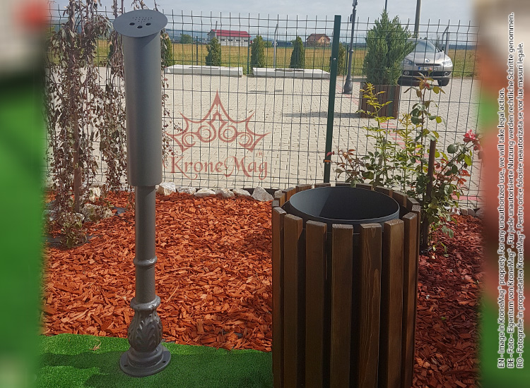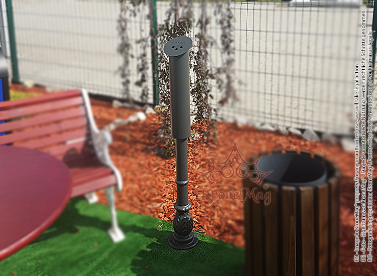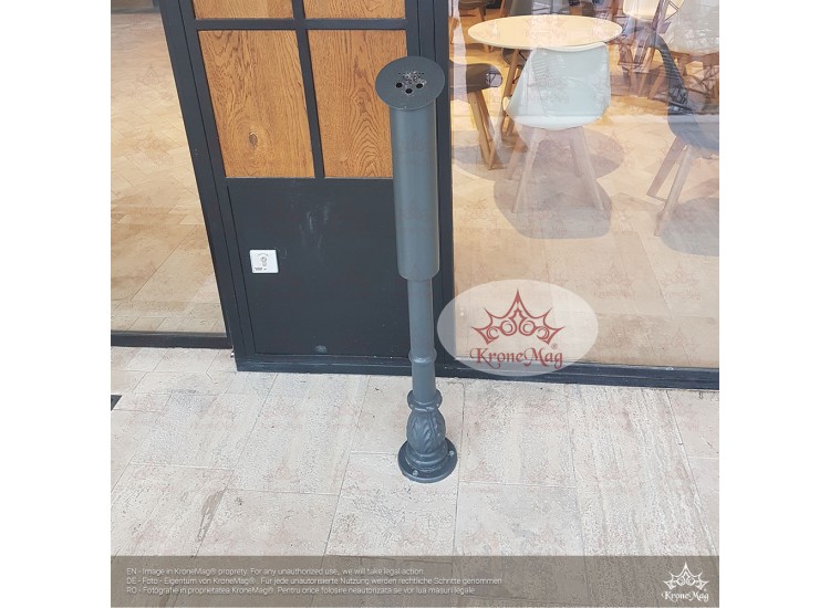 Fém hamutartó, amelyet a közintézmények, egyetemek, éttermek, teraszok vagy más, kifejezetten a dohányzás céljára tervezett területek bejáratnál lehet felszerelni.