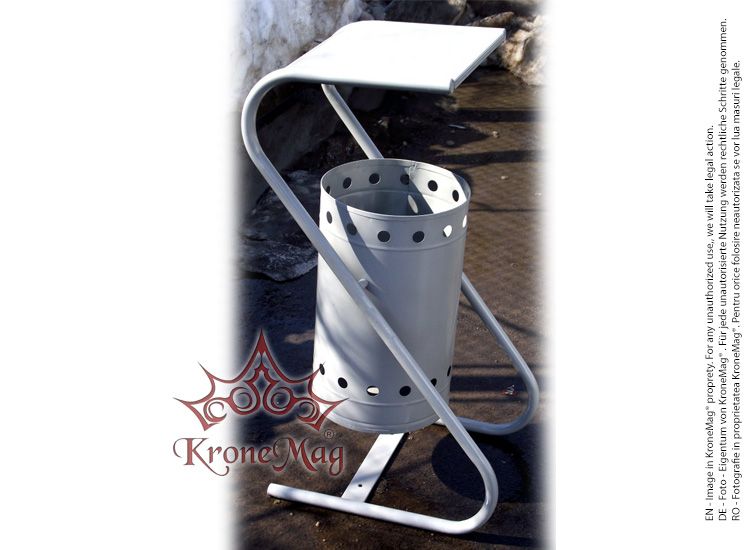 A szeméttároló tartálya horganyzott acéllemezből készül és vastagsága 1 mm, valamint dekoratív lyukak díszítik