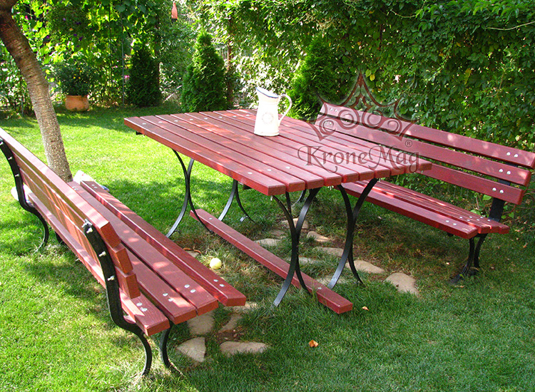A kerti készlet 1 asztalból és 2